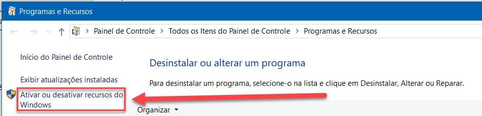 Agora, no canto direito da tela, clique em Programas e Recursos.